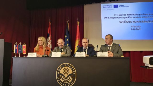 , 4. decembar 2025Prvi poziv za podnošenje predloga projekata u okviru Programa prekogranične saradnje Srbija – Crna Gora 2021–2027 predstavljen je u Prijepolju, na svečanoj konferenciji koju su organizovali Ministarstvo za evropske integracije Republike Srbije, Ministarstvo evropskih poslova Crne Gore i Ministarstvo finansija Republike Srbije – CFCU.